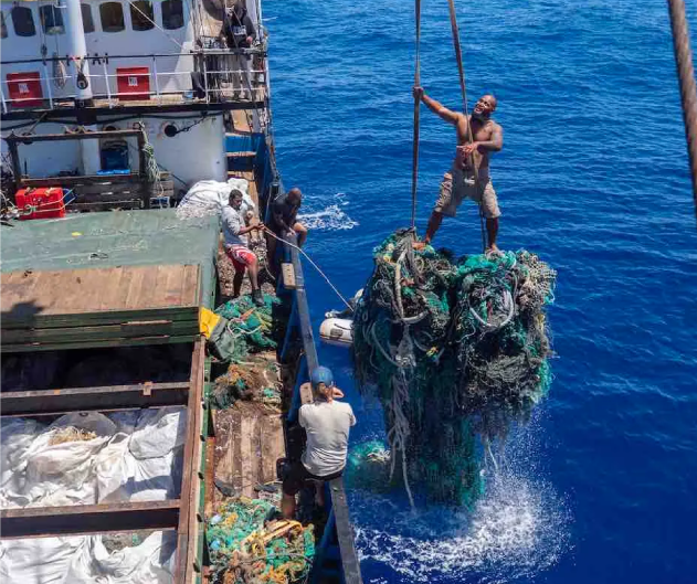 Ocean Voyages Institute GPS-tags "ghost nets" (abandoned fishing gear) and then deploys veteran sailors and islanders to pick them up.